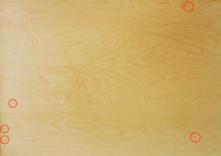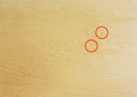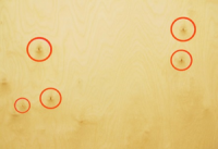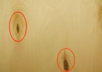 В этом материале допустимы выпадающие сучки и отверстия от них. Может присутствовать червоточина, диаметром до 6 мм, при количестве до 10 штук на каждый квадратный метр. В этом материале встречаются здоровые сросшиеся сучки, в неограниченном количестве.